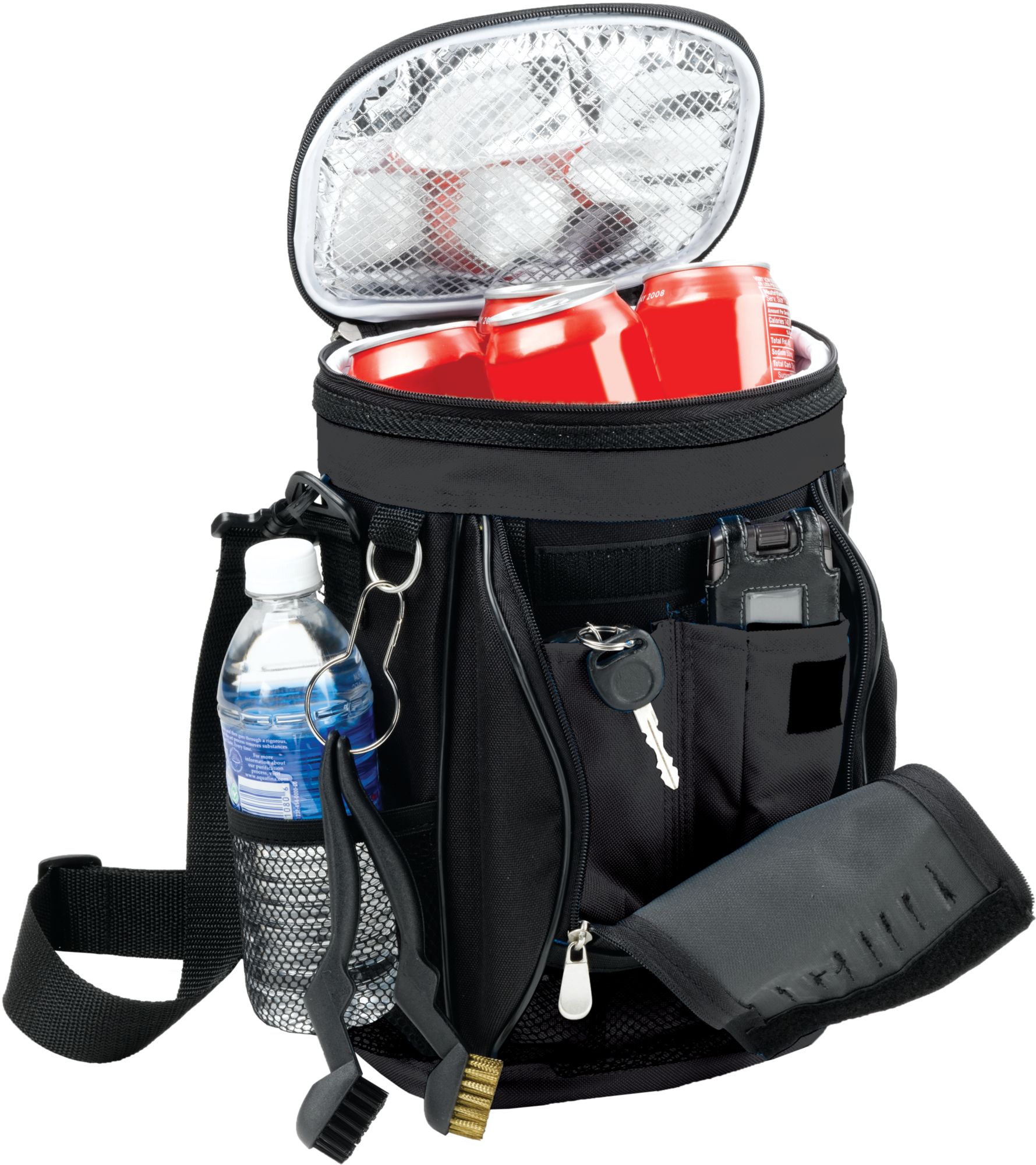 - Capable of holding up to 10 cans plus ice