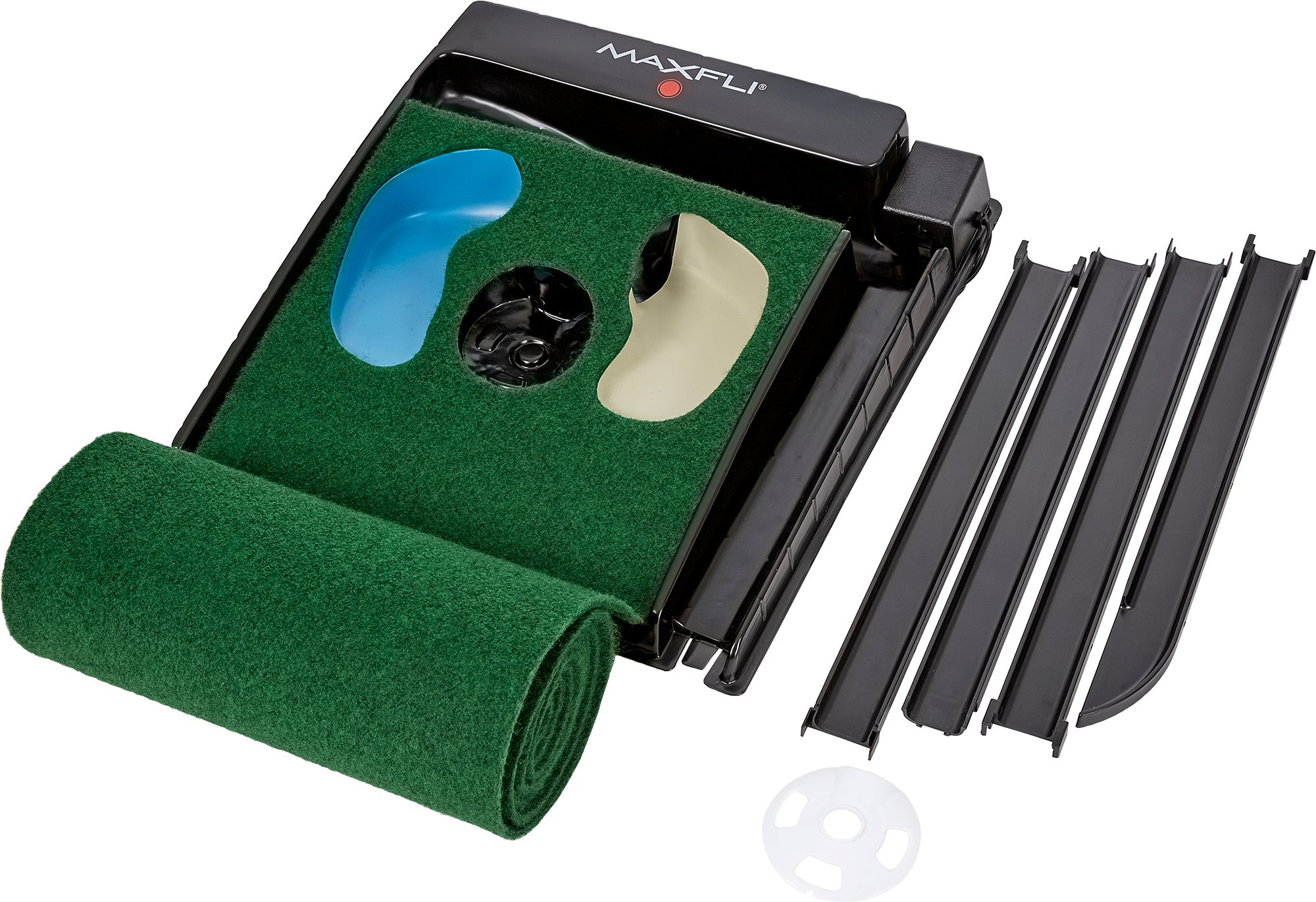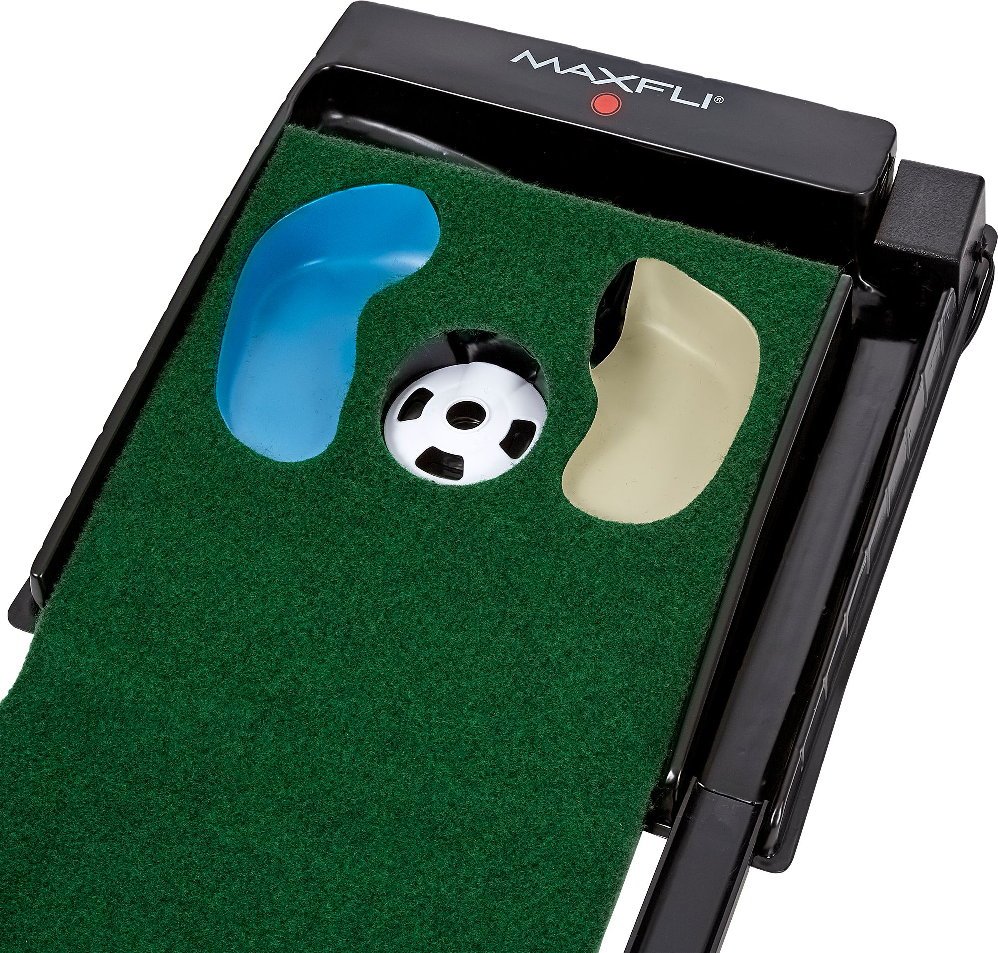 Add excitement to your short game practice by training with the Maxfli Performance Series Electric Putting Mat. Perfect for putting practice at home or in the office, this 9β mat features durable turf material with anti-slip backing to simulate the look and feel of a putting green. An automatic ball return consistently returns made or missed putts to the same spot for hassle-free use. Adjustable 4β, 6β and 8β cues on the side putting track enable consistent practice, while water hazard and sand trap elements bring a new level of focus to your training routine.