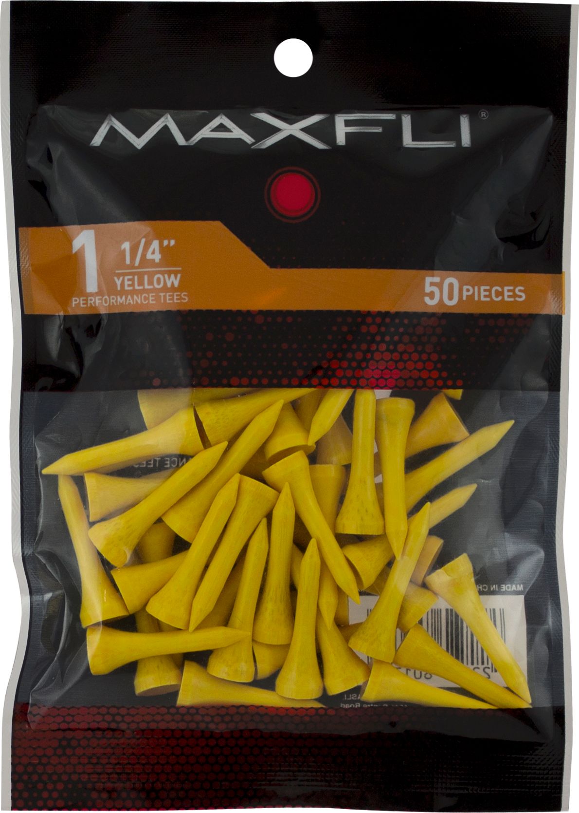 Tee up your golf ball in eye catching style with the Maxfli 1 ¼&” Yellow Tees. These bright, vibrant tees are a break from the everyday but won’t distract you from your swing. Specially designed to be the optimal length for iron shots. A shorter construction helps enhance overall durability making each tee last longer.